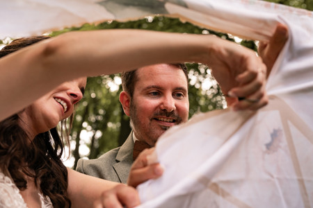 Nach dem Shooting ging es dann los. Alle Gäste waren langsam eingekehrt und die Trauung konnte starten. Kristian wartete gemeinsam mit ihrem Sohn vor einem schön geschmückten Hexagon auf die Mama. Selina wurde von Ihrer Mutter bei toller Musik zu ihren beiden Männer geführt. Die Trauung war sehr romantisch und die kleine Familie hat jeden Moment genossen. Da Kristian ein Darsteller bei Musical Tomorrow ist, gab es natürlich wunderbare Musikbegleitung während der Trauung und am Abend wartete noch eine Überraschung auf die beiden. Übrigens: ein Besuch bei Musical Tomorrow ist sehr empfehlenswert. Die Darsteller sind einfach nur Spitze und nehmen einen sofort mit in ihre Welt. Schaut doch mal vorbei!