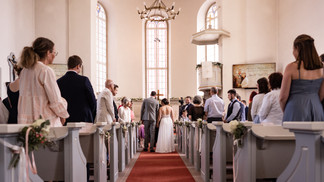 Nach dem traumhaften Shooting bei bestem Wetter am See sind wir nach Singhofen zur evangelischen Kirche gefahren, wo die kirchliche Trauung stattfand. Es war alles sehr emotional und es wurden einige Tränchen verdrückt, vor allem als Live gesungen wurde. Nach der Trauung wurde das Brautpaar vor der Kirche mit Seifenblasen und einem großen Herz zum Ausschneiden überrascht.